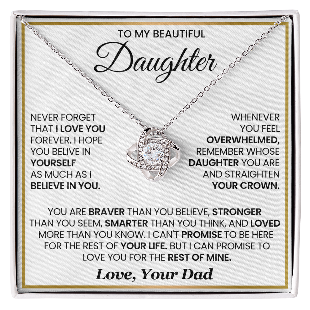 To My Daughter - You Are Braver and Stronger - Love Knot Necklace