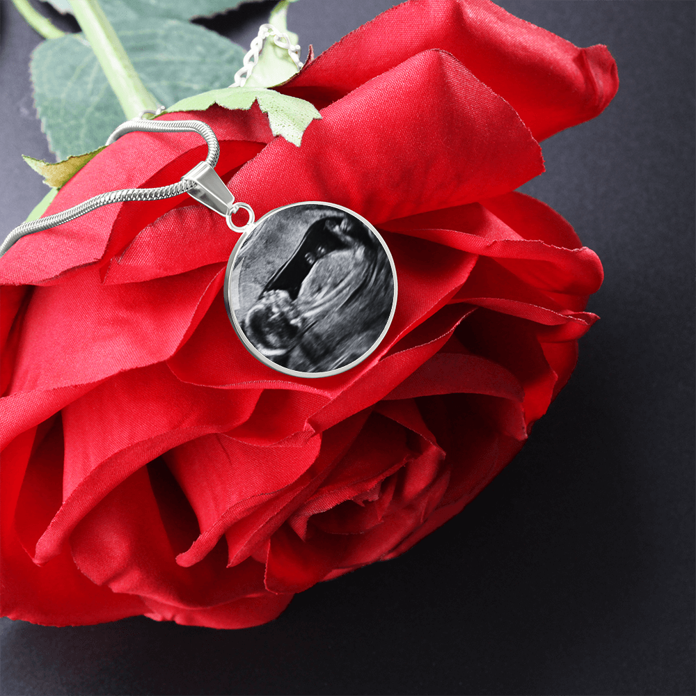 Ultrasound Necklace Sonogram, Circle Pendant Necklace for New Mom, Baby Announcement Present, Mother's Day Gift